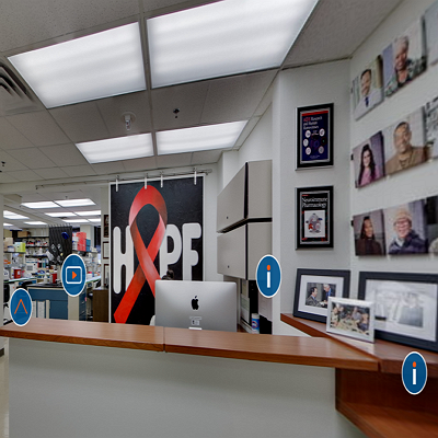 Hover over a hotspot to select a tour and explore The Wistar Institute.