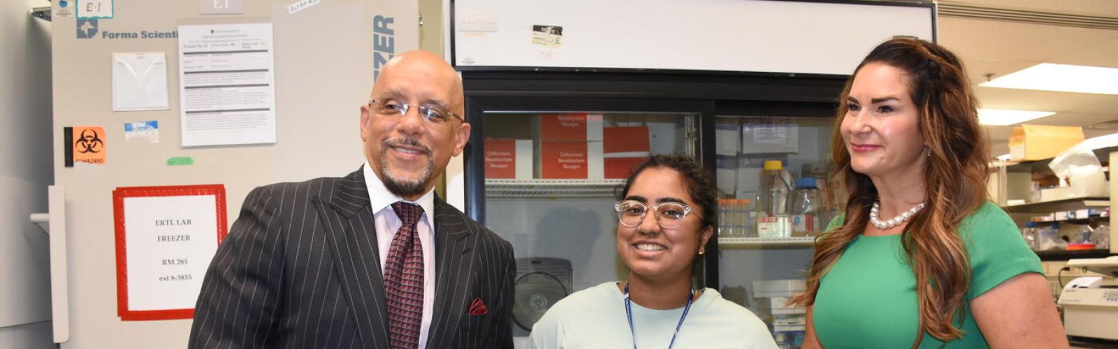 On June 9, 2022, Pennsylvania Department of Labor and Industry Secretary Jennifer Berrier and State Senator Vincent Hughes toured the Institute to learn more about how this investment into Wistar helps bolster the Pennsylvania workforce. In addition to hearing about the various ongoing research projects, Berrier and Hughes met some of the students who are participating in the Biomedical Technician Training (BTT) Program and summer internships following the Biomedical Research Methods course offered through a collaboration between Wistar and Cheyney University.