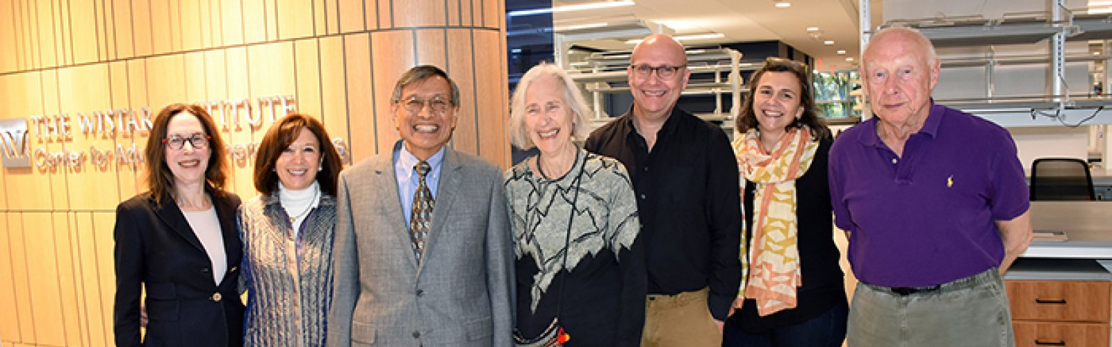 Dr. Barbara B. Knowles’ recent return to The Wistar Institute was timely. The former professor and her family toured Wistar’s newly opened Center for Advanced Therapeutics (CAT). During the visit Dr. Knowles also conferred her blessings on a new $1.5 million endowed professorship carrying her name. The Barbara B. Knowles, Ph.D., Endowed Professorship was made possible by a philanthropic gift from two Wistar Trustees – Sue Dillon, Wistar Board Vice Chair, and Helen Pudlin, former Wistar Board Chair. The permanent endowment supports the recruitment of a cutting-edge, academically excellent research leader to the CAT.