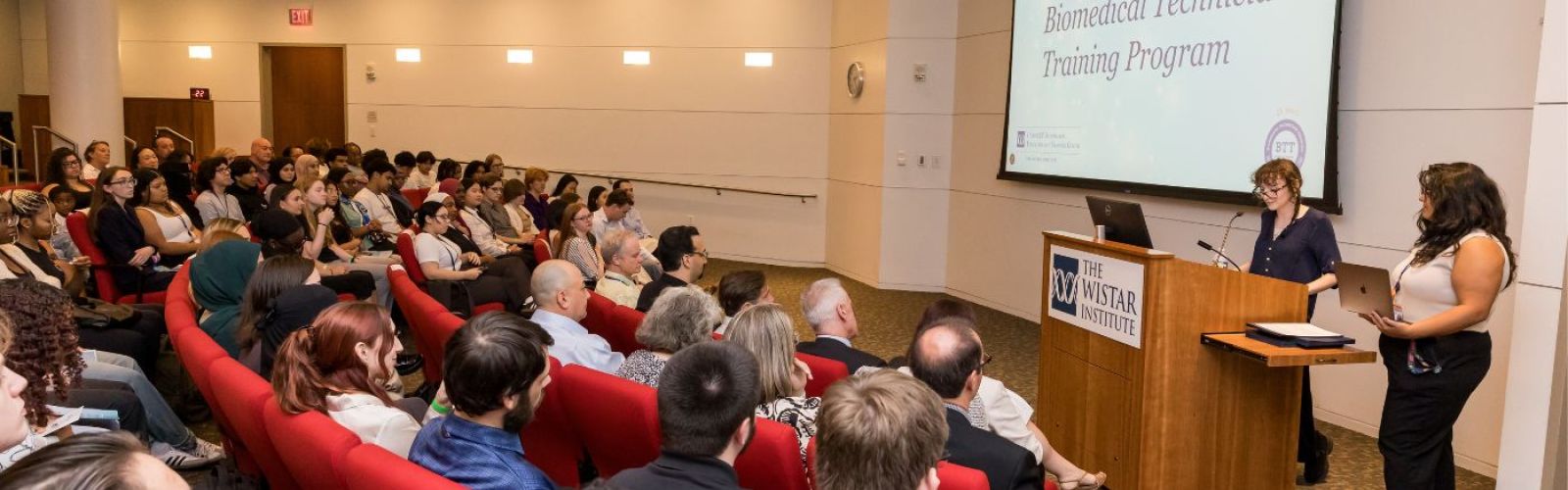 Keynote Speaker Andreas Weidmer, Wistar’s Training Lab Coordinator and a graduate of the second BTT cohort in 2002, talked about his journey from Switzerland to Wistar. His advice to students? “Challenge yourself. Step into unfamiliar territory. Believe that you can do it. Sometimes you need a push, sometimes you need guidance—but it’s there. You can do it.”
