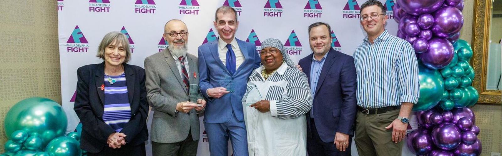 At the opening celebration for AIDS Education Month on Thursday, June 1st, Philly FIGHT honored two Wistar senior scientists for their decades of contribution to HIV/AIDS research. Drs. Livio Azzoni and Emmanouil Papasavvas — each a senior scientist in the HIV program and Wistar Montaner Lab — received the Kiyoshi Kuromiya award, which honors a community Philadelphia activist, Kiyoshi Kuromiya that galvanized national and global awareness to the needs of persons living with HIV. Kuromiya organized with the Gay Liberation Front for gay rights and founded the Philly chapter of ACT UP to advocate for those impacted by the AIDS epidemic, and the award bearing his name recognizes those who have similarly impacted our community and made a difference to the lives of persons living with HIV.